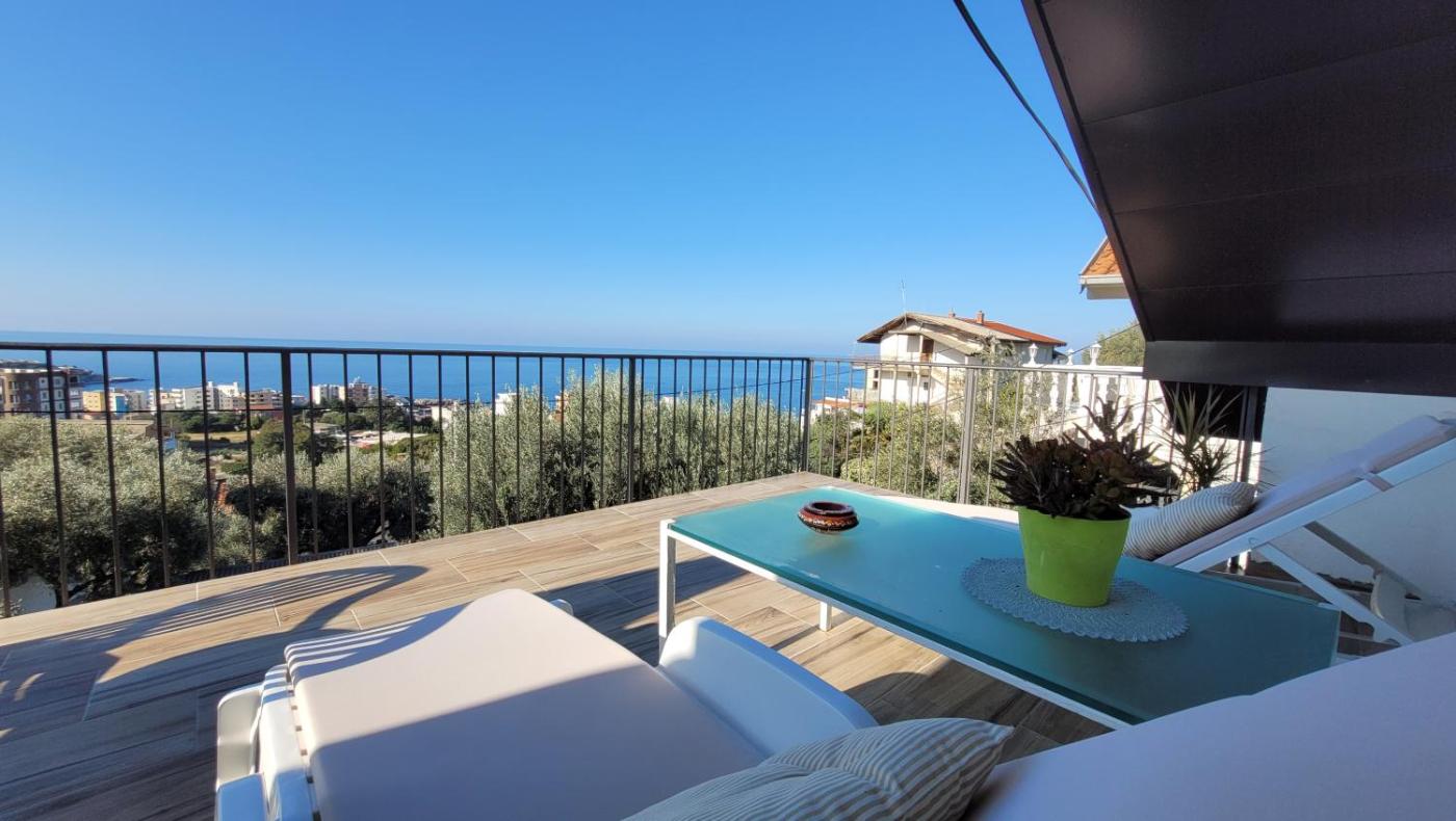 The apartment with a terrace and sea views has 2 bedrooms, a living room, a flat-screen TV, an equipped kitchenette with a fridge and a stovetop, and 1 bathroom with a walk-in shower. Guests can enjoy a meal on an outdoor dining area while overlooking the garden views. The property offerscourtyard views.