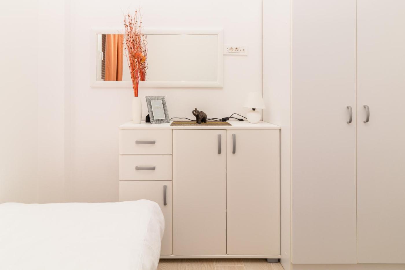 One-Bedroom Apartment. This air-conditioned apartment comes with 1 living room, 1 separate bedroom and 1 bathroom with a shower. In the well-fitted kitchen, guests will find a refrigerator, kitchenware, an oven and a toaster. The apartment has tiled floors, a seating area with a flat-screen TV, a washing machine, a dining area as well as a quiet street view. The unit has 3 beds.