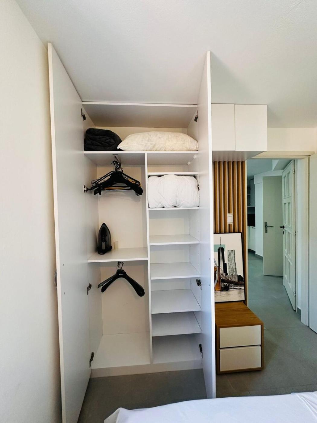 One-Bedroom Apartment. This air-conditioned apartment features 1 living room, 1 separate bedroom and 1 bathroom with a walk-in shower. Guests can make meals in the kitchen that features a refrigerator, kitchenware, an oven and an electric kettle. Boasting a terrace with garden views, this apartment also features a washing machine and a flat-screen TV with streaming services. The unit has 2 beds.