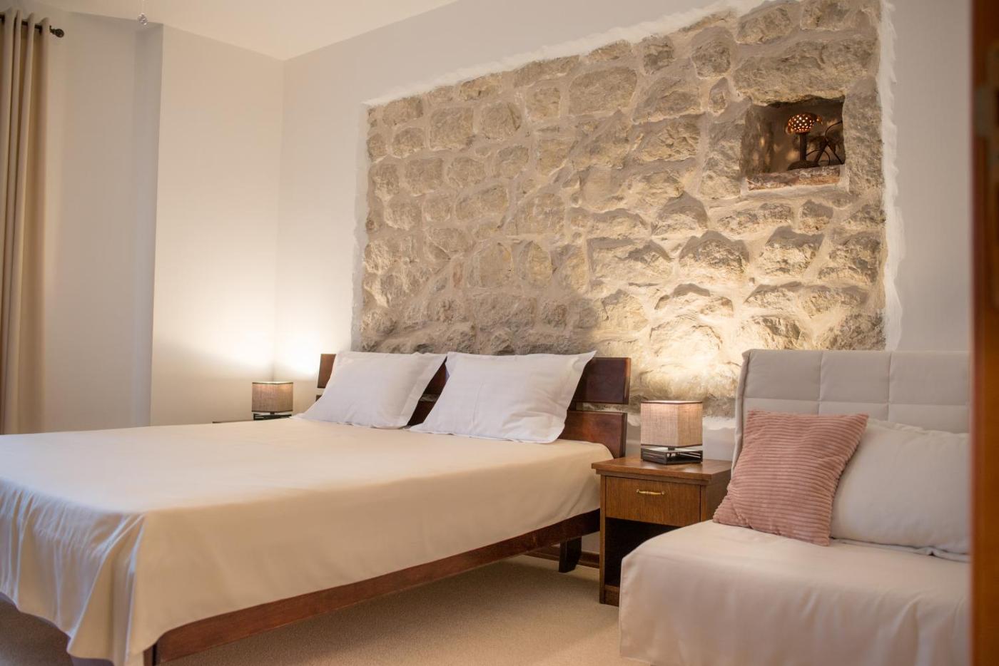 Double Room with Sea View. Air-conditioned room featuring a wardrobe, a table, a safe, a small fridge and a flat-screen TV. Private bathroom provides a shower and hairdryer. Old stone walls are partially visible and the room features a view of Kotor Bay. Please note that extra beds are not available in this room type. ;