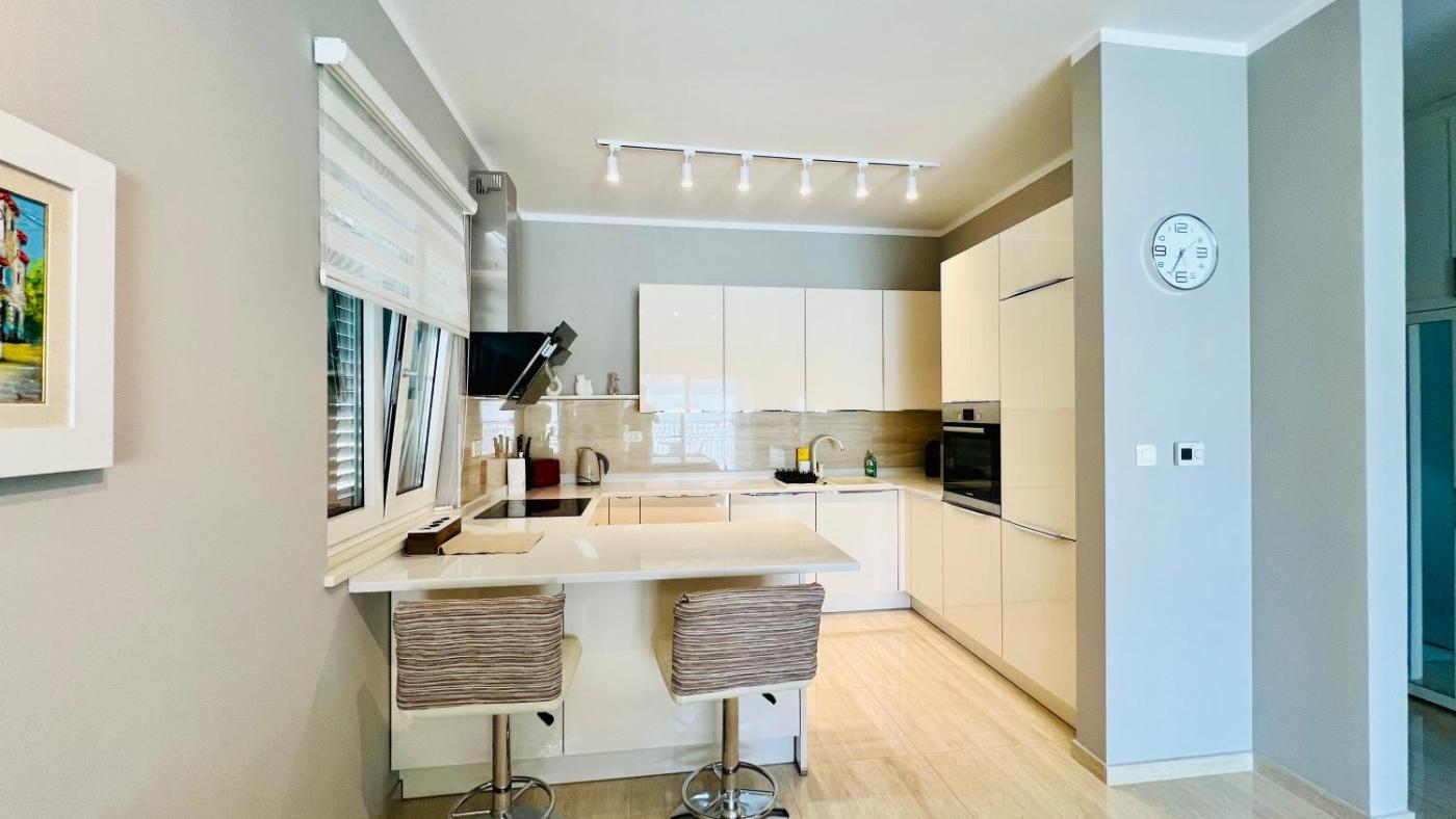 One-Bedroom Apartment. Boasting a private entrance, this air-conditioned apartment includes 1 living room, 1 separate bedroom and 2 bathrooms with a walk-in shower and a bath. In the well-equipped kitchen, guests will find a stovetop, a refrigerator, a dishwasher and kitchenware. Featuring a terrace with sea views, this apartment also offers a washing machine and a flat-screen TV with streaming services. The unit has 2 beds. ;