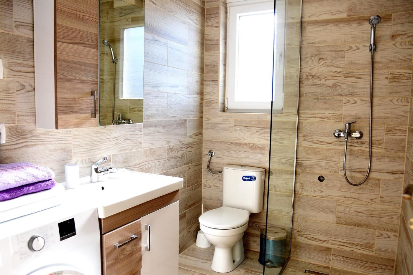 One-Bedroom Apartment. This apartments standout feature is the spa bath. Boasting a private entrance, this air-conditioned apartment includes 1 living room, 1 separate bedroom and 1 bathroom with a walk-in shower and a hairdryer. In the well-fitted kitchen, guests will find a stovetop, a refrigerator, a dishwasher and kitchenware. Featuring a terrace with sea views, this apartment also offers a washing machine and a flat-screen TV with satellite channels. The unit has 2 beds. ;