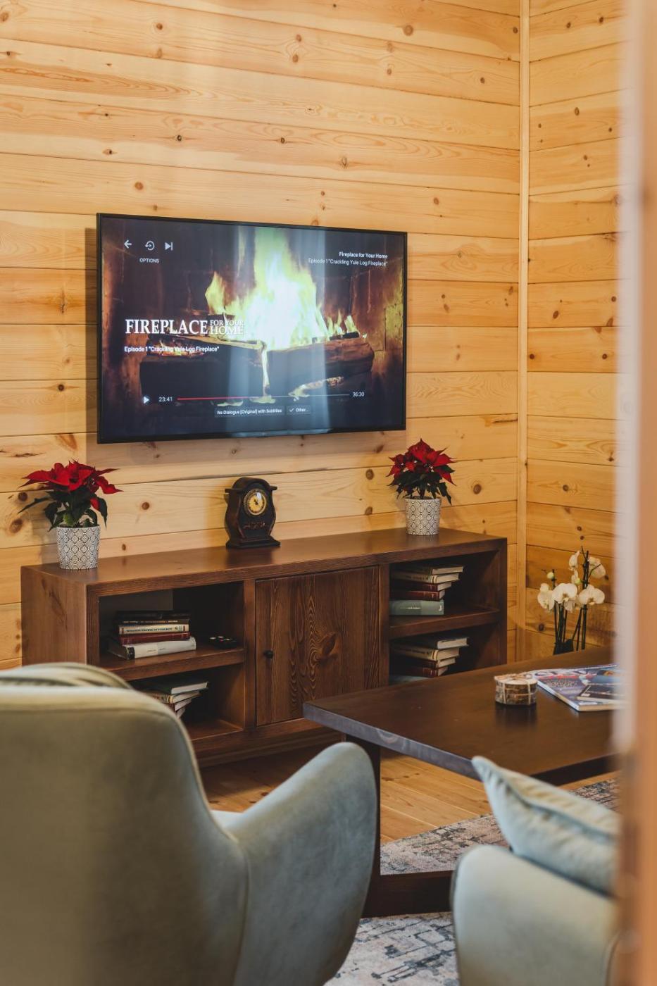 Two-Bedroom Chalet. The sauna and fireplace are the special features of this chalet. Boasting a private entrance, this chalet features 1 living room, 2 separate bedrooms and 1 bathroom with a shower and a hairdryer. The well-equipped kitchen has a stovetop, a refrigerator, kitchenware and an oven. Featuring a terrace with mountain views, this chalet also features a washing machine and a flat-screen TV. The unit has 4 beds.