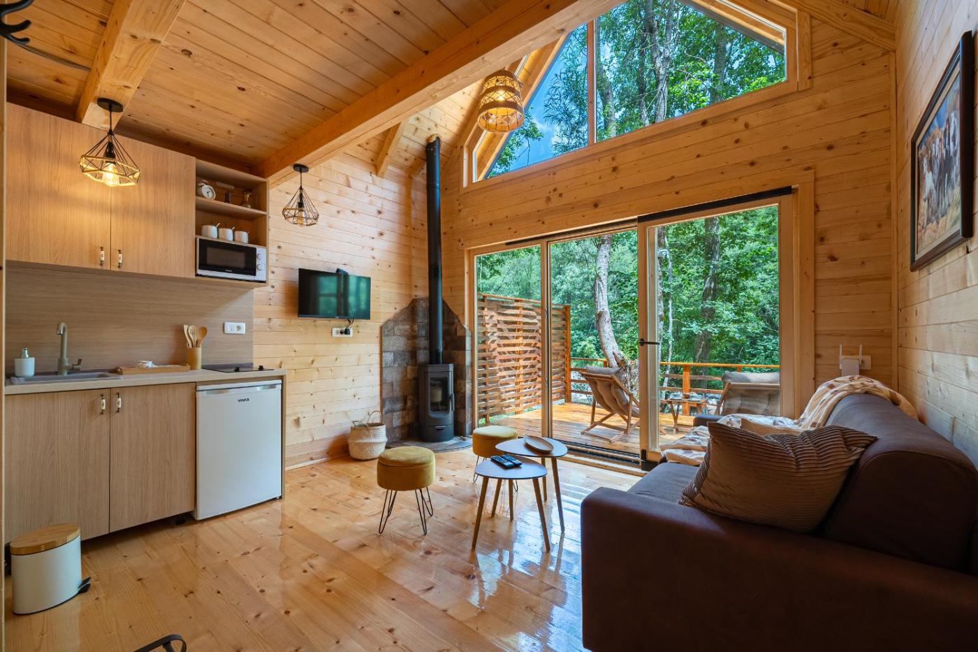The holiday home provides guests with a terrace, mountain views, a seating area, a flat-screen TV, a fully equipped kitchenette with a microwave and a fridge, and a private bathroom with shower and a hair dryer. A patio with outdoor furniture and river views is offered in each unit. The units are equipped with heating facilities.