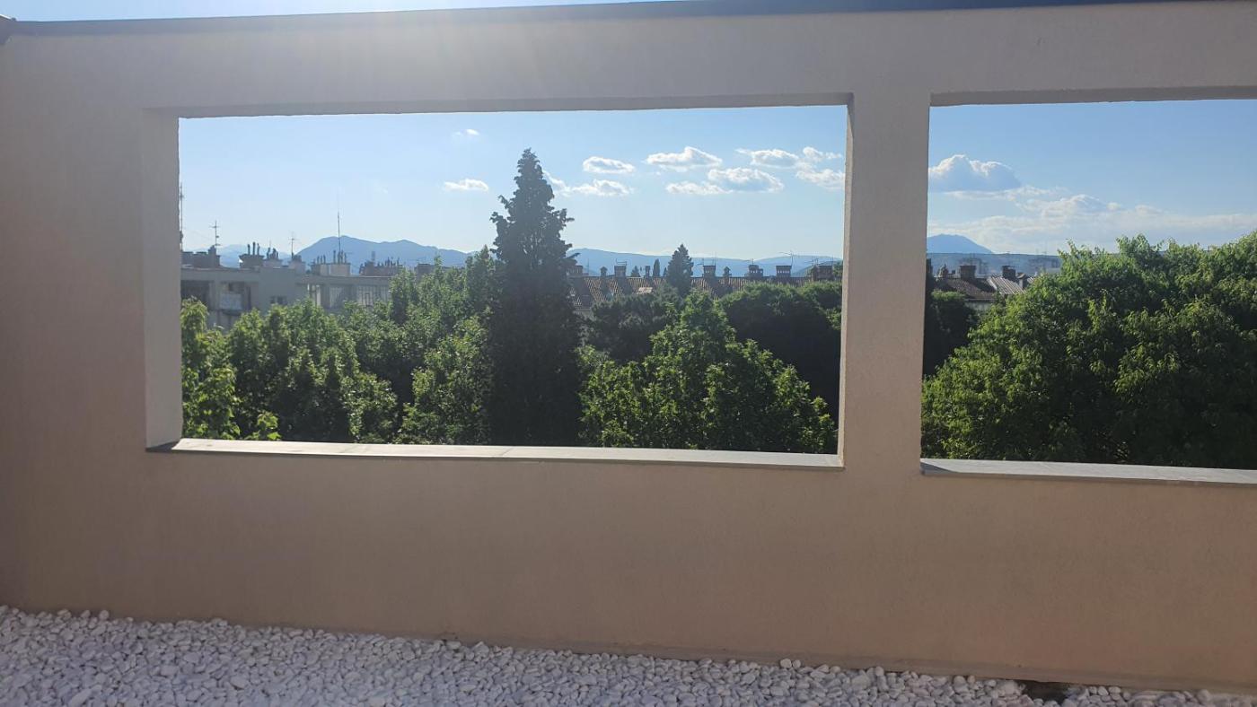 The apartment is equipped with 2 bedrooms, 1 bathroom, bed linen, towels, a flat-screen TV with satellite channels, a dining area, a fully equipped kitchen, and a terrace with garden views. The property offers city views.