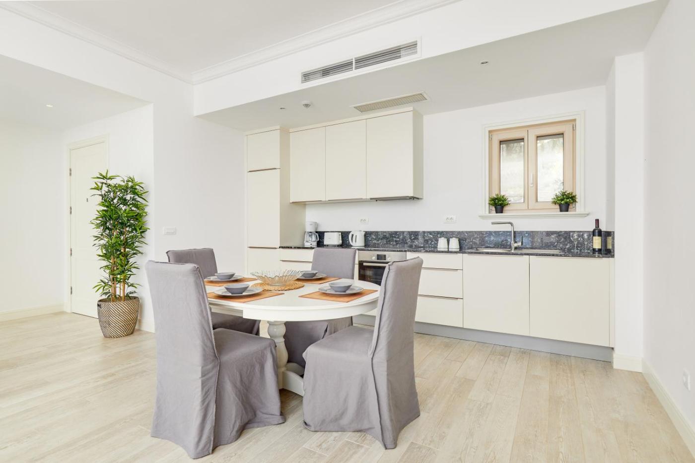 Apartment with Sea View. This apartments special feature is the pool with a view. This spacious apartment comprises 1 living room, 1 separate bedroom and 1 bathroom with a walk-in shower and free toiletries. Guests can make meals in the kitchen that is equipped with a stovetop, a refrigerator, a dishwasher and kitchenware. The air-conditioned apartment provides a flat-screen TV with streaming services, a washing machine, a private entrance, soundproof walls as well as sea views. The unit offers 2 beds.